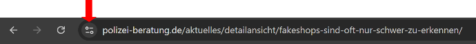 Hier gehen Sie auf das Symbol mit den 2 Schiebereglern, die sich links neben dem Weblink befinden. Klicken Sie dort drauf und es erscheint ein Untermenü mit weiteren Hinweisen zu der eingegebenen Website u.a. Auch ob der eingegebene Weblink sicher ist.