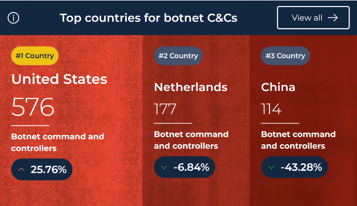 Laut Stand vom 26.02.2026 hat das Spamhaus Project bekanntgegeben, dass die Ukraine mit +60% beim Hosting von Botnet-Befehlen und -Controllern am Schlimmsten ist.